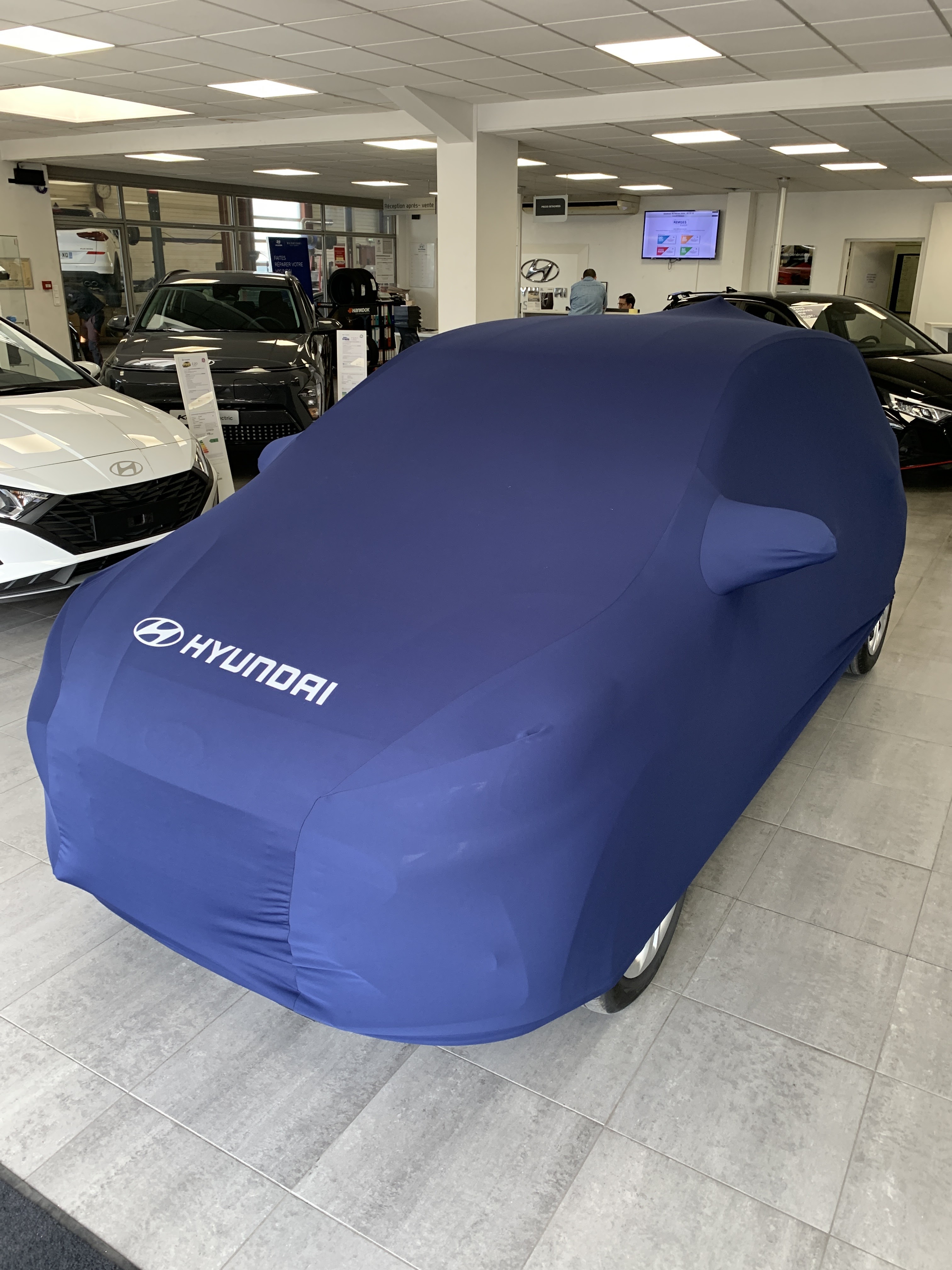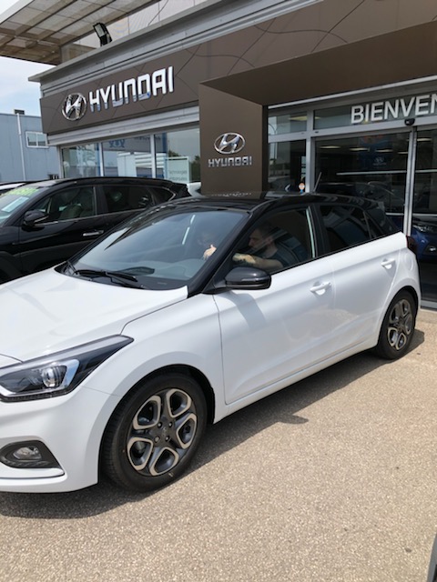 Nous avons pris possession de notre première voiture Hyundai aujourd'hui. Nous attendions ce moment avec impatience et nous n'avons pas été déçus. Mikael (qui s'est occupé de nous de la première visite jusqu'à la livraison) nous attendait, la voiture neuve bâchée au centre de la concession, avec une jolie orchidée pour Madame. Après le compte à rebours pour débâcher et découvrir la voiture pour la première fois (un peu comme lorsque les constructeurs dévoilent un nouveau modèle au salon de l'auto), il a pris le temps de nous accompagner pour la mise en route : appairage de nos téléphones à la voiture, configuration des profils conducteurs, explications détaillées sur les fonctionnalités et les menus de l'écran. Nous sommes ravis de notre achat et sommes prêts pour partir à l'aventure avec notre nouvelle Titine !